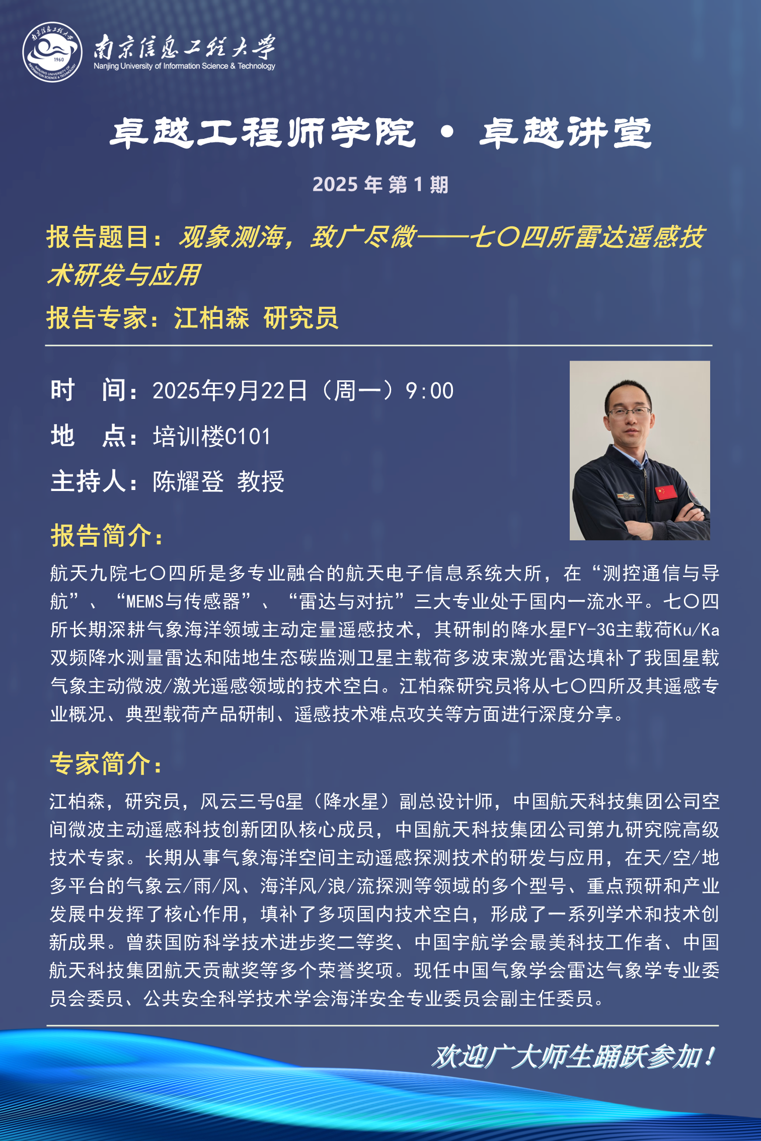 卓越讲堂(2025年第1期):特邀航天九院七〇四所江柏森研究员来我校做报告
