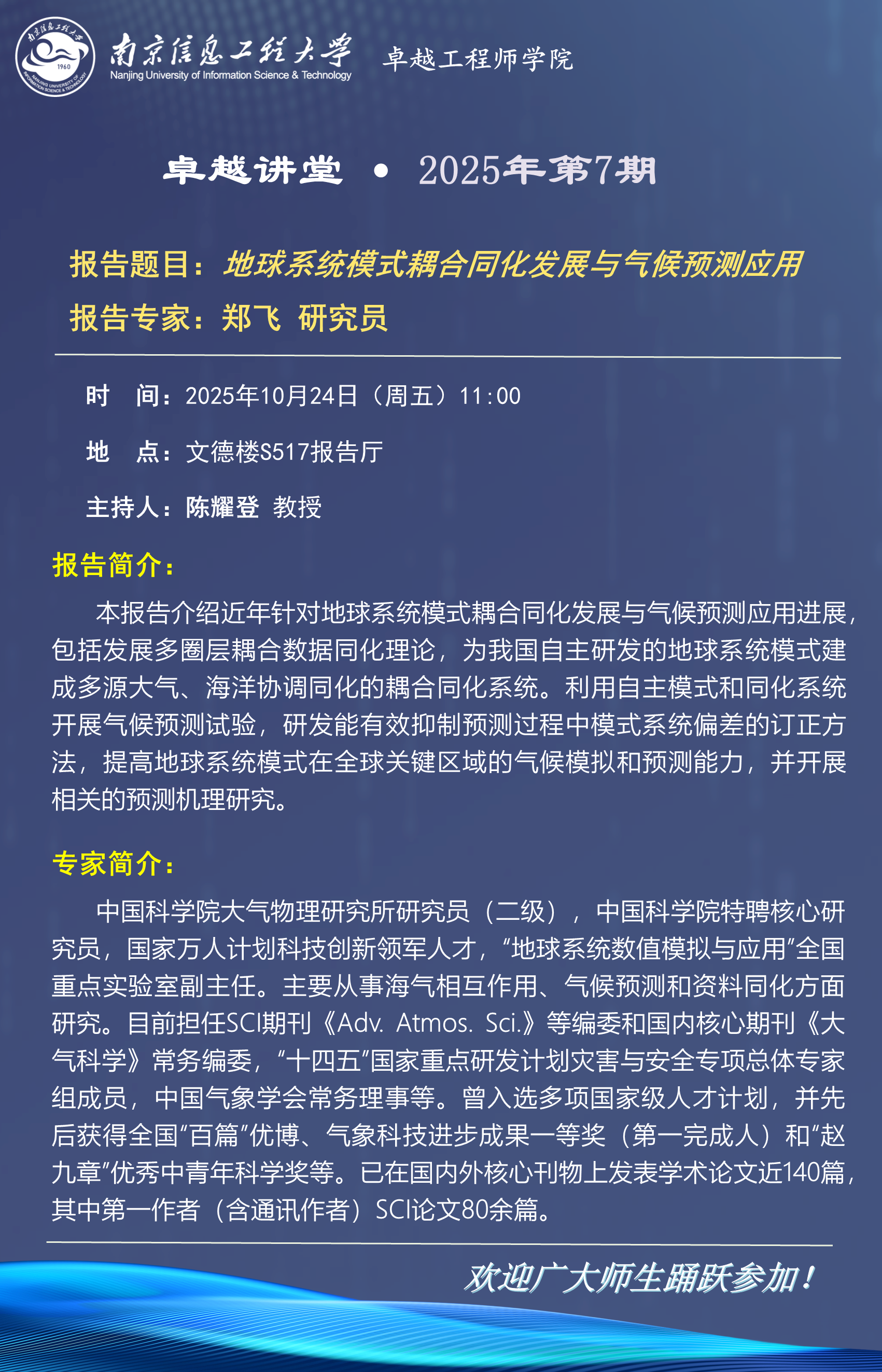 卓越讲堂(2025年第7期):特邀中国科学院大气物理研究所郑飞研究员做报告
